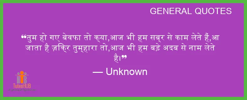 तुम हो गए बेवफा तो क्या,आज भी हम सब्र से काम लेते हैं,आ जाता है ज़िक्र तुम्हारा तो,आज भी हम बड़े अदब से नाम लेते है।