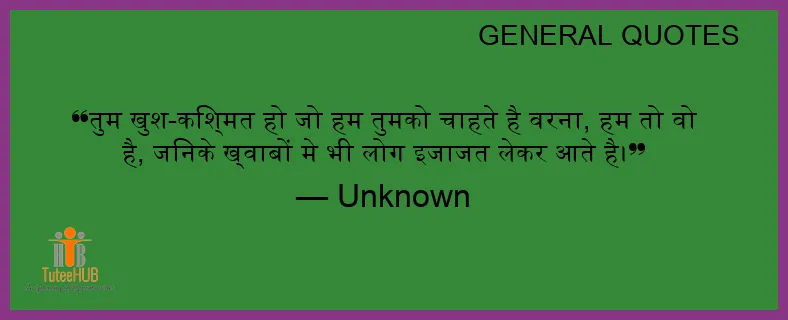 तुम खुश-किश्मत हो जो हम तुमको चाहते है वरना, हम तो वो है, जिनके ख्वाबों मे भी लोग इजाजत लेकर आते है।