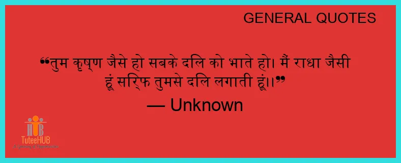 तुम कृष्ण जैसे हो सबके दिल को भाते हो। मैं राधा जैसी हूं सिर्फ तुमसे दिल लगाती हूं।।