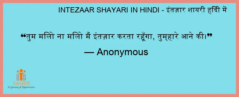 तुम मिलो ना मिलो मैं इंतज़ार करता रहूँगा, तुम्हारे आने की।