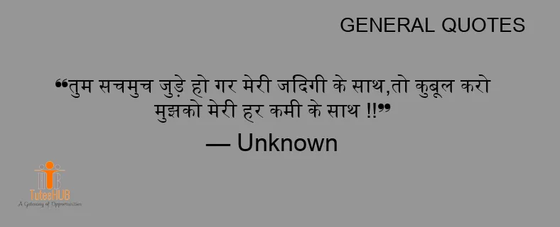 तुम सचमुच जुड़े हो गर मेरी जिंदगी के साथ,तो कुबूल करो मुझको मेरी हर कमी के साथ !!