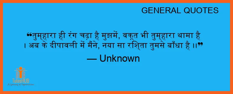 तुम्हारा ही रंग चढ़ा है मुझमें, वक़्त भी तुम्हारा थामा है । अब के दीपावली में मैंने, नया सा रिश्ता तुमसे बाँधा है ।।