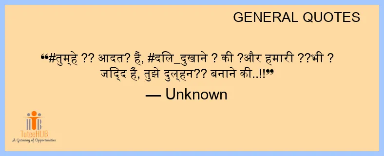 #तुम्हे ?? आदत? हैं, #दिल_दुखाने ? की ?और हमारी ??भी ? जिद्द हैं, तुझे दुल्हन?? बनाने की..!!