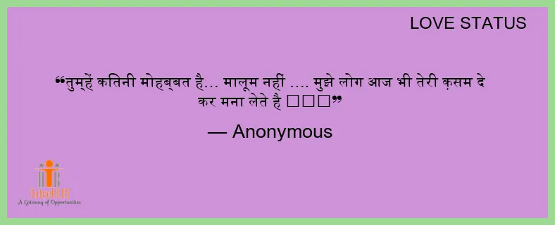 तुम्हें कितनी मोहब्बत है… मालूम नहीं …. मुझे लोग आज भी तेरी क़सम दे कर मना लेते है 😊😊😊