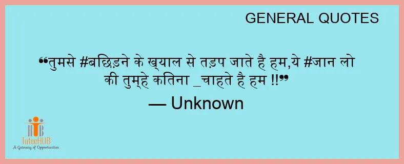 तुमसे #बिछड़ने के ख्याल से तड़प जाते है हम,ये #जान लो की तुम्हे कितना _चाहते है हम !!