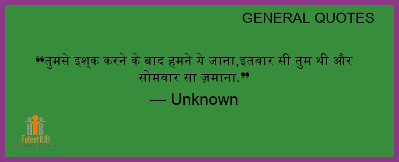 तुमसे इश्क करने के बाद हमने ये जाना,इतवार सी तुम थी और सोमवार सा ज़माना.