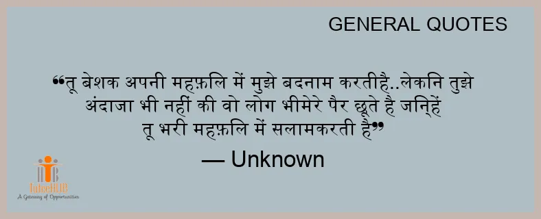 तू बेशक अपनी महफ़िल में मुझे बदनाम करतीहै..लेकिन तुझे अंदाजा भी नहीं की वो लोग भीमेरे पैर छूते है जिन्हें तू भरी महफ़िल में सलामकरती है