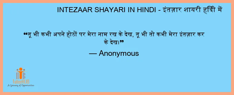 तू भी कभी अपने होठों पर मेरा नाम रख के देख, तू भी तो कभी मेरा इंतज़ार कर के देख।