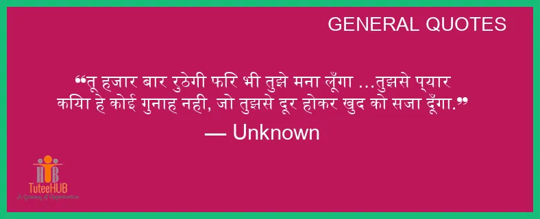 तू हजार बार रुठेगी फिर भी तुझे मना लूँगा …तुझसे प्यार किया हे कोई गुनाह नही, जो तुझसे दूर होकर खुद को सजा दूँगा.