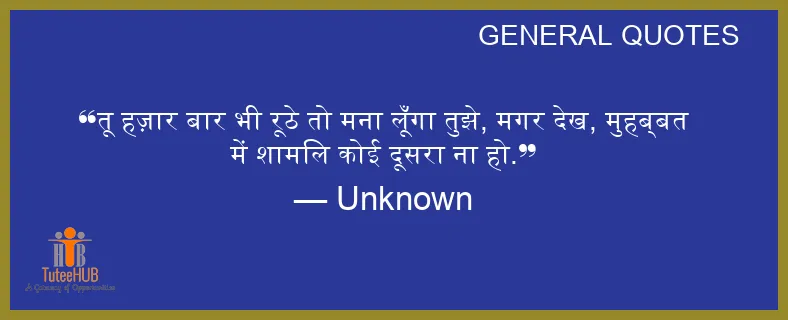 तू हज़ार बार भी रूठे तो मना लूँगा तुझे, मगर देख, मुहब्बत में शामिल कोई दूसरा ना हो.