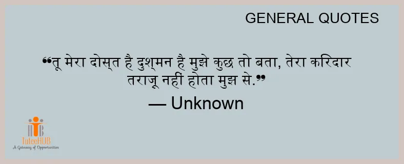 तू मेरा दोस्त है दुश्मन है मुझे कुछ तो बता, तेरा किरदार तराज़ू नहीं होता मुझ से.