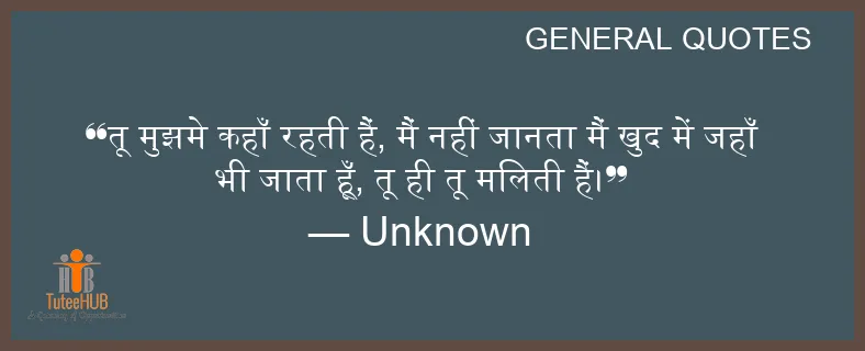 तू मुझमे कहाँ रहती हैं, मैं नहीं जानता मैं खुद में जहाँ भी जाता हूँ, तू ही तू मिलती हैं।