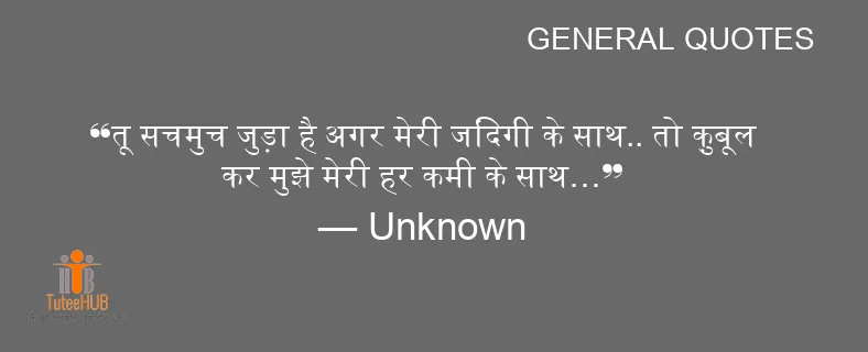 तू सचमुच जुड़ा है अगर मेरी जिंदगी के साथ.. तो क़ुबूल कर मुझे मेरी हर कमी के साथ…