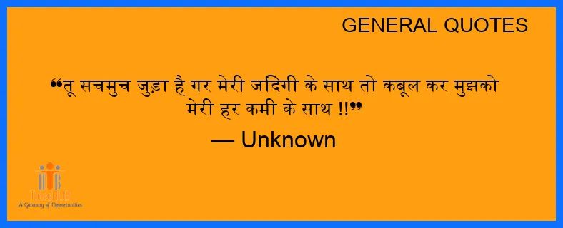 तू सचमुच जुड़ा है गर मेरी जिंदगी के साथ तो कबूल कर मुझको मेरी हर कमी के साथ !!
