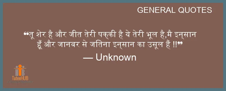 तू शेर है और जीत तेरी पक्की है ये तेरी भूल है,मै इन्सान हूँ और जानवर से जितना इन्सान का उसूल हैं !!