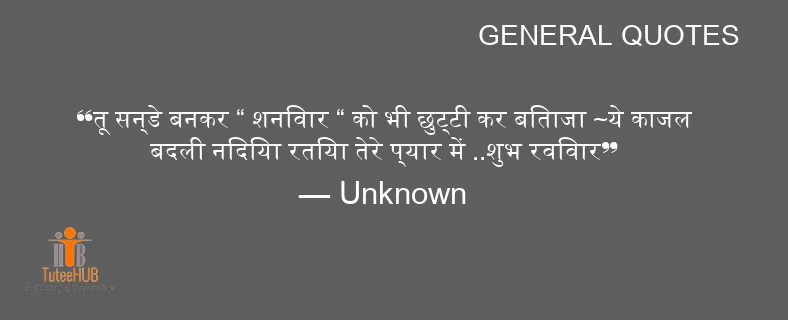 तू सन्डे बनकर “ शनिवार “ को भी छुट्टी कर बिताजा ~ये काजल बदली निंदिया रतिया तेरे प्यार में ..शुभ रविवार
