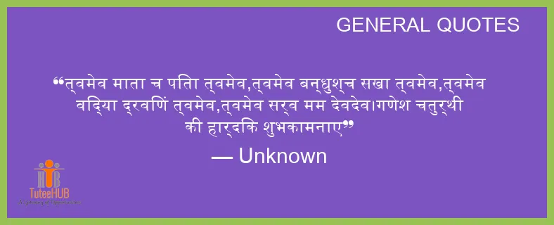 त्वमेव माता च पिता त्वमेव,त्वमेव बन्धुश्च सखा त्वमेव,त्वमेव विद्या द्रविणं त्वमेव,त्वमेव सर्व मम देवदेव।गणेश चतुर्थी की हार्दिक शुभकामनाए