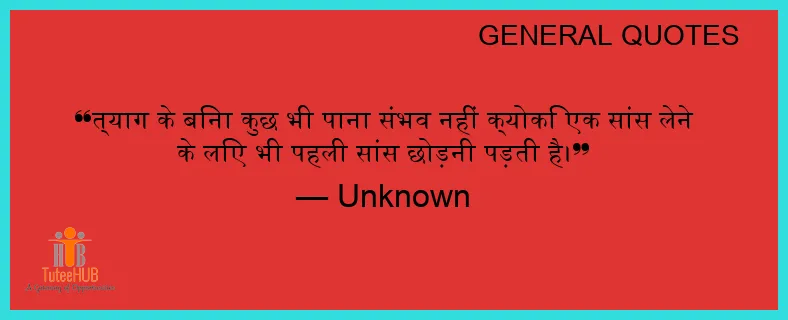 त्याग के बिना कुछ भी पाना संभव नहीं क्योकि एक सांस लेने के लिए भी पहली सांस छोड़नी पड़ती है।