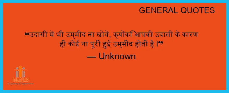 उदासी में भी उम्मीद ना खोयें, क्योंकि आपकी उदासी के कारण ही कोई ना पूरी हुई उम्मीद होती है I