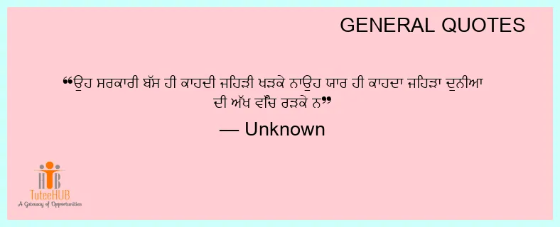ਉਹ ਸਰਕਾਰੀ ਬੱਸ ਹੀ ਕਾਹਦੀ ਜਿਹੜੀ ਖੜਕੇ ਨਾਉਹ ਯਾਰ ਹੀ ਕਾਹਦਾ ਜਿਹੜਾ ਦੁਨੀਆ ਦੀ ਅੱਖ ਵਿੱਚ ਰੜਕੇ ਨ