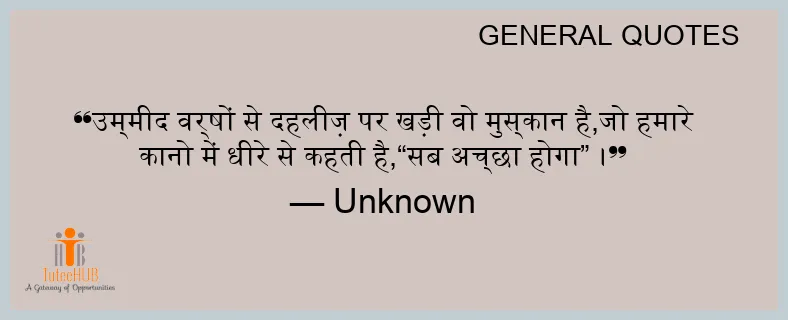 उम्मीद वर्षों से दहलीज़ पर खड़ी वो मुस्कान है,जो हमारे कानो में धीरे से कहती है,“सब अच्छा होगा” ।