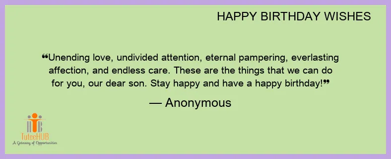 Unending love, undivided attention, eternal pampering, everlasting affection, and endless care. These are the things that we can do for you, our dear son. Stay happy and have a happy birthday!