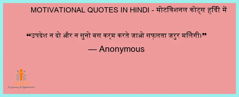 उपदेश न दो और न सुनो बस कर्म करते जाओ सफ़लता जरुर मिलेगी।