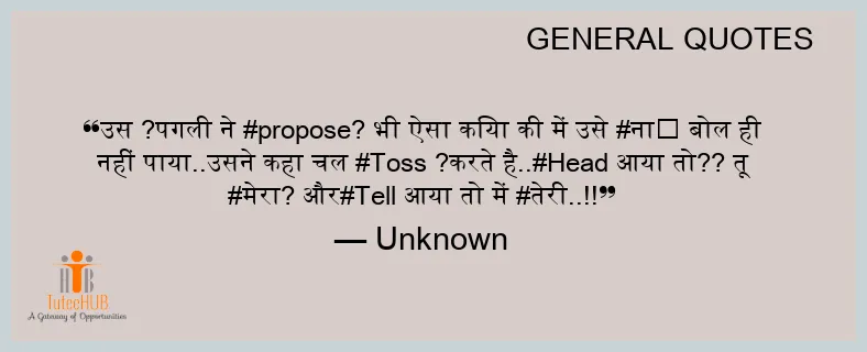 उस ?पगली ने #propose? भी ऐसा किया की में उसे #ना❌ बोल ही नहीं पाया..उसने कहा चल #Toss ?करते है..#Head आया तो?? तू #मेरा? और#Tell आया तो में #तेरी..!!