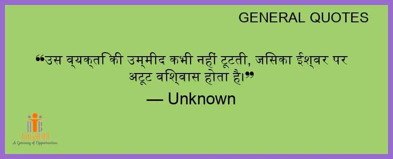 उस व्यक्ति की उम्मीद कभी नहीं टूटती, जिसका ईश्वर पर अटूट विश्वास होता है।