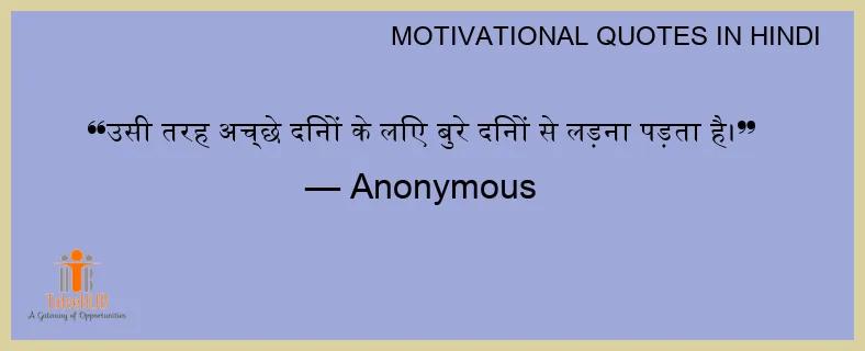उसी तरह अच्छे दिनों के लिए बुरे दिनों से लड़ना पड़ता है।
