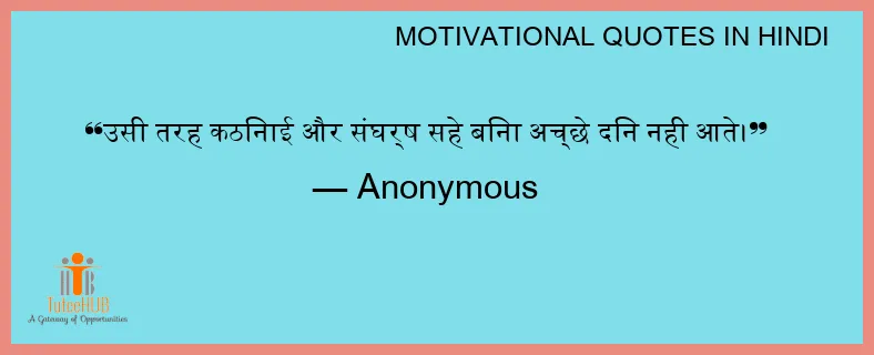 उसी तरह कठिनाई और संघर्ष सहे बिना अच्छे दिन नही आते।