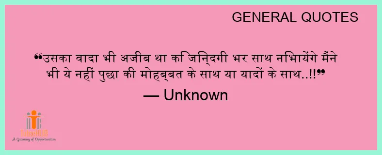 उसका वादा भी अजीब था कि जिन्दगी भर साथ निभायेंगे मैंने भी ये नहीं पुछा की मोहब्बत के साथ या यादों के साथ..!!