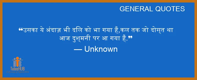 उसका ये अंदाज़ भी दिल को भा गया हैं,कल तक जो दोस्त था आज दुश्मनी पर आ गया हैं.