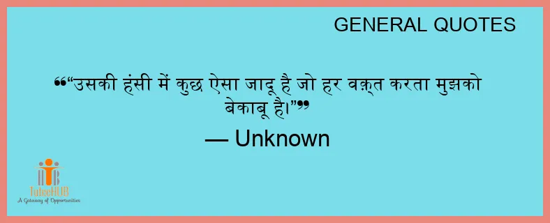 “उसकी हंसी में कुछ ऐसा जादू है जो हर वक़्त करता मुझको बेकाबू है।”