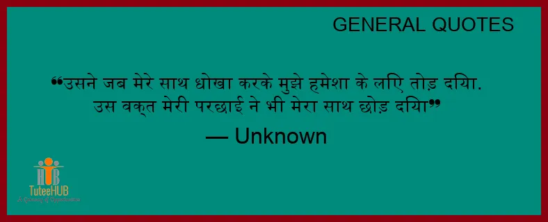 उसने जब मेरे साथ धोखा करके मुझे हमेशा के लिए तोड़ दिया. उस वक्त मेरी परछाई ने भी मेरा साथ छोड़ दिया