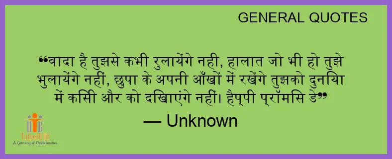 वादा है तुझसे कभी रुलायेंगे नही, हालात जो भी हो तुझे भुलायेंगे नहीं, छुपा के अपनी आँखों में रखेंगे तुझको दुनिया में किसी और को दिखाएंगे नहीं। हैप्पी प्रॉमिस डे
