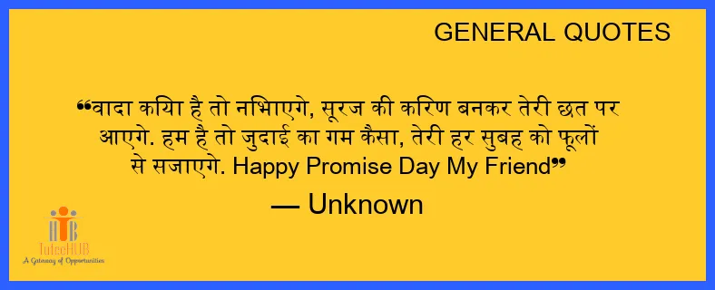 वादा किया है तो निभाएगे, सूरज की किरण बनकर तेरी छत पर आएगे. हम है तो जुदाई का गम कैसा, तेरी हर सुबह को फूलों से सजाएगे. Happy Promise DAY My Friend