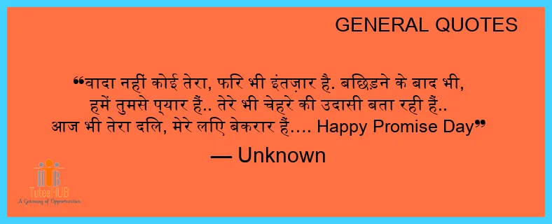 वादा नहीं कोई तेरा, फिर भी इंतज़ार है. बिछड़ने के बाद भी, हमें तुमसे प्यार हैं.. तेरे भी चेहरे की उदासी बता रही हैं.. आज भी तेरा दिल, मेरे लिए बेकरार हैं…. Happy PROMISE Day