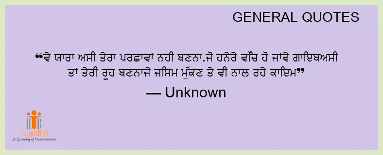 ਵੇ ਯਾਰਾ ਅਸੀ ਤੇਰਾ ਪਰਛਾਵਾਂ ਨਹੀ ਬਣਨਾ.ਜੋ ਹਨੇਰੇ ਵਿੱਚ ਹੋ ਜਾਂਵੇ ਗਾਇਬਅਸੀ ਤਾਂ ਤੇਰੀ ਰੂਹ ਬਣਨਾਜੋ ਜਿਸਮ ਮੁੱਕਣ ਤੇ ਵੀ ਨਾਲ ਰਹੇ ਕਾਇਮ