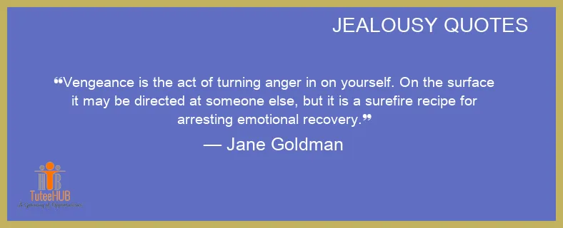 VENGEANCE is the ACT of turning anger in on yourself. On the surface it may be DIRECTED at SOMEONE else, but it is a surefire recipe for arresting EMOTIONAL recovery.