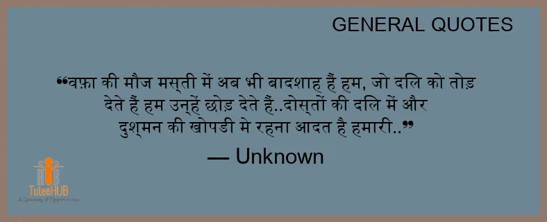 वफ़ा की मौज मस्ती में अब भी बादशाह हैं हम, जो दिल को तोड़ देते हैं हम उन्हें छोड़ देते हैं..दोस्तों की दिल में और दुश्मन की खोपडी मे रहना आदत है हमारी..