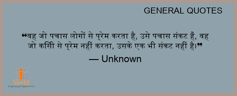 वह जो पचास लोगों से प्रेम करता है, उसे पचास संकट हैं, वह जो किसी से प्रेम नहीं करता, उसके एक भी संकट नहीं है।