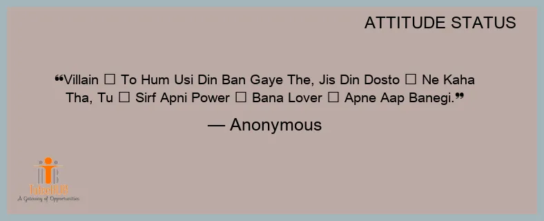 Villain 😈 To Hum Usi Din Ban Gaye The, Jis Din Dosto 👬 Ne Kaha Tha, Tu 🚶 Sirf Apni Power 👊 Bana Lover 👰 Apne Aap Banegi.