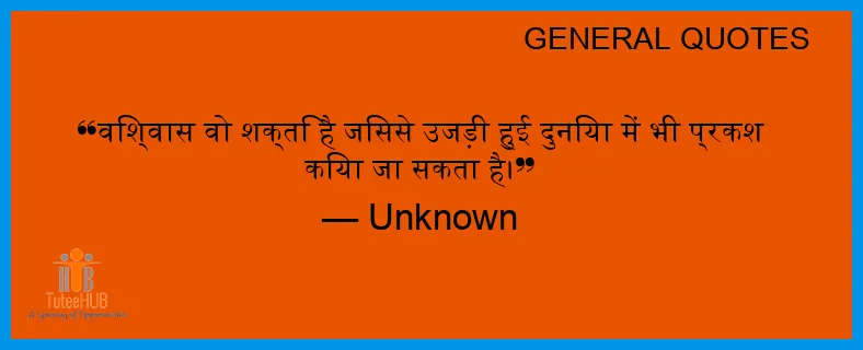विश्वास वो शक्ति है जिससे उजड़ी हुई दुनिया में भी प्रकश किया जा सकता है।