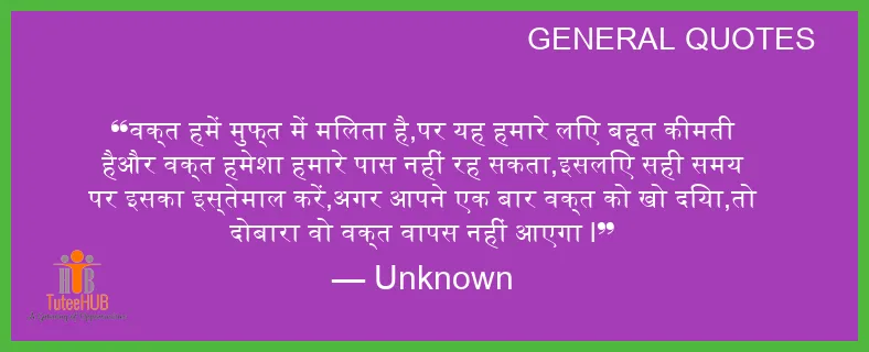 वक्त हमें मुफ्त में मिलता है,पर यह हमारे लिए बहुत कीमती हैऔर वक्त हमेशा हमारे पास नहीं रह सकता,इसलिए सही समय पर इसका इस्तेमाल करें,अगर आपने एक बार वक्त को खो दिया,तो दोबारा वो वक्त वापस नहीं आएगा l