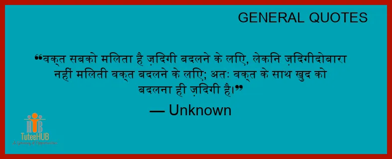 वक्त सबको मिलता है ज़िंदगी बदलने के लिए, लेकिन ज़िंदगीदोबारा नहीं मिलती वक्त बदलने के लिए; अतः वक्त के साथ खुद को बदलना ही ज़िंदगी है।