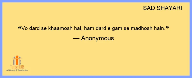 Vo dard se khaamosh hai, ham dard e gam se madhosh hain.