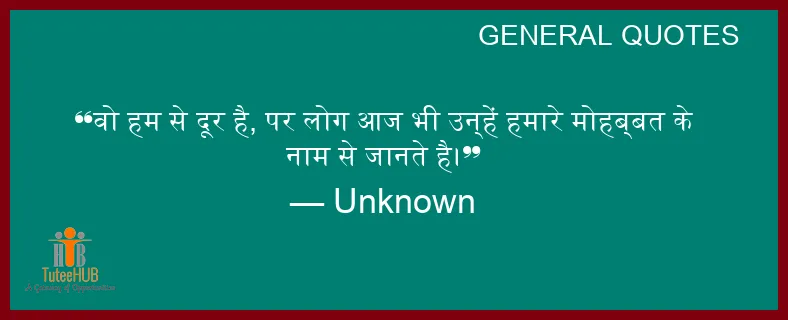वो हम से दूर है, पर लोग आज भी उन्हें हमारे मोहब्बत के नाम से जानते है।