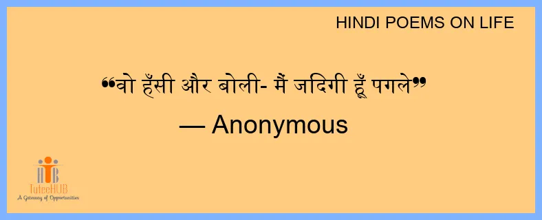वो हँसी और बोली- मैं जिंदगी हूँ पगले