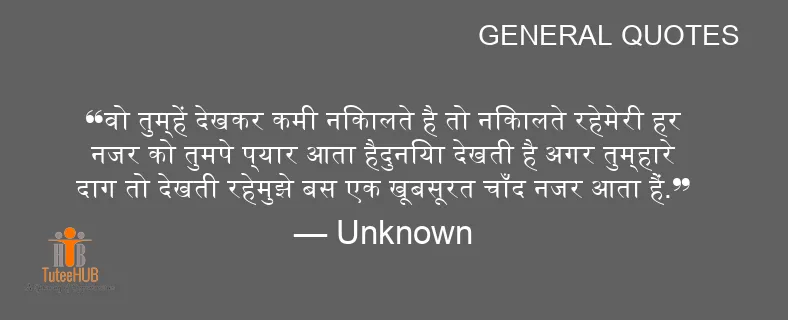 वो तुम्हें देखकर कमी निकालते है तो निकालते रहेमेरी हर नजर को तुमपे प्यार आता हैदुनिया देखती है अगर तुम्हारे दाग तो देखती रहेमुझे बस एक खूबसूरत चाँद नजर आता हैं.